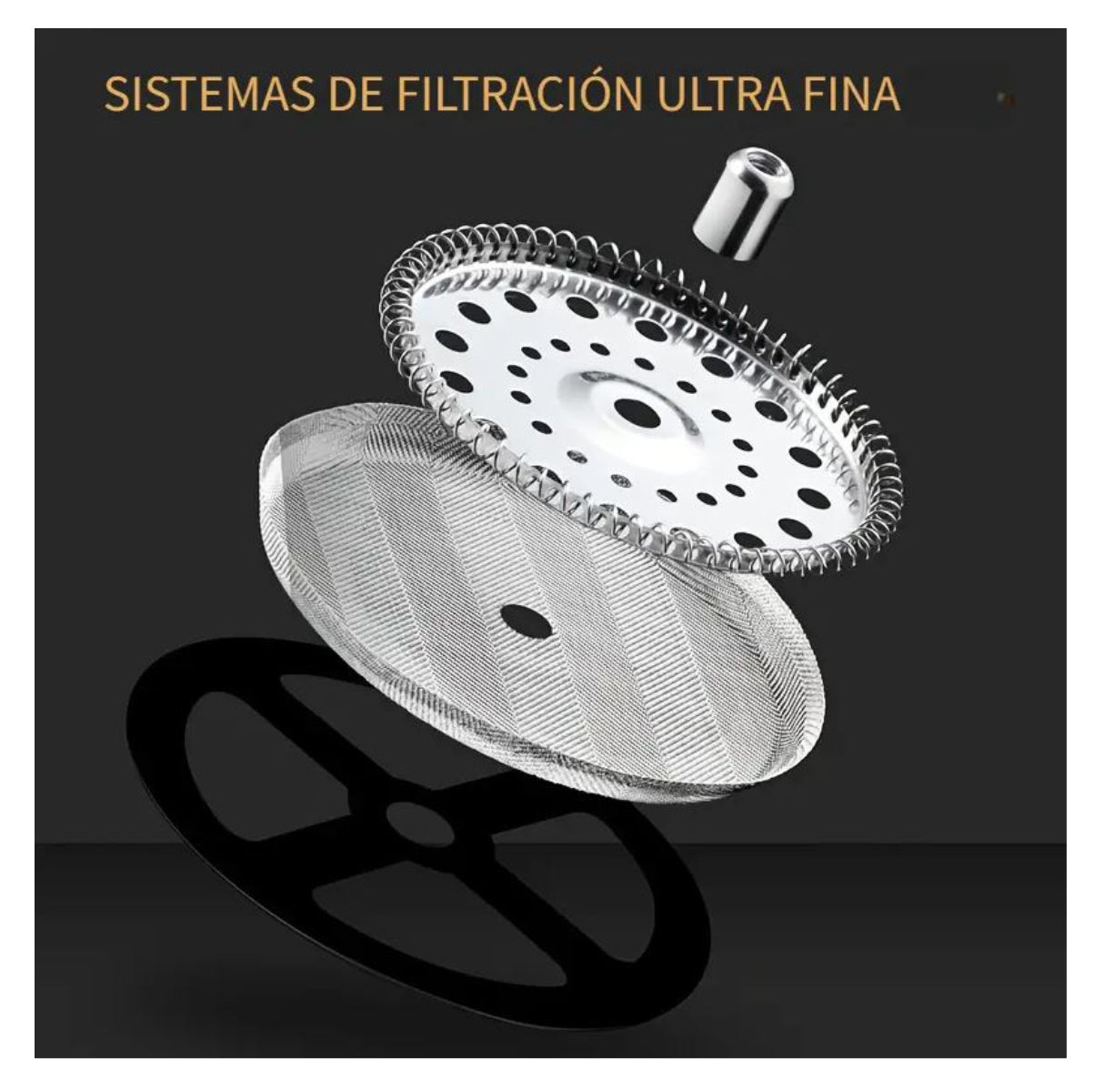 Filtración efectiva: incluye pantalla de filtro y anillo de sellado que eliminan los posos para un café limpio y delicado.