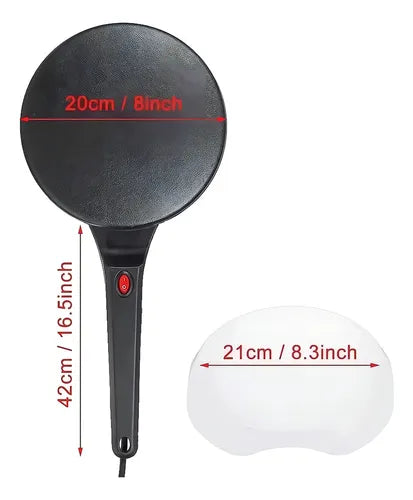 Aunque no tiene control de temperatura, su potencia uniforme garantiza crepes dorados y crujientes, dulces o salados. Perfecta para desayunos, reuniones familiares o momentos divertidos con amigos.