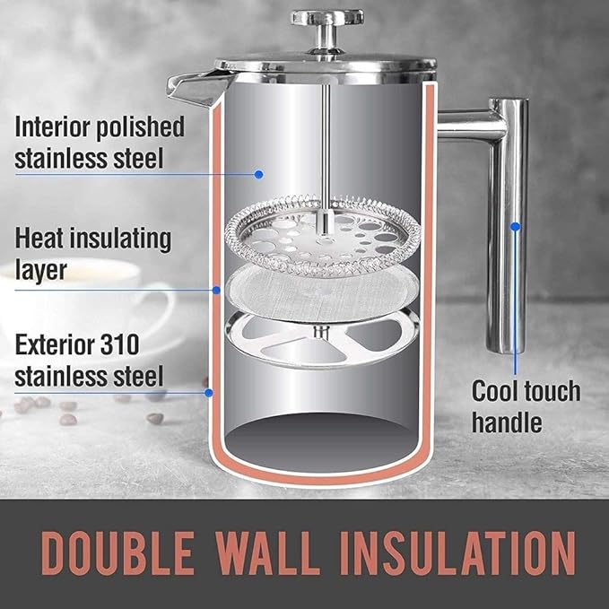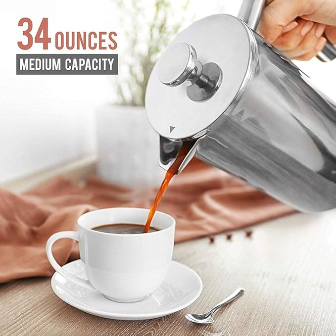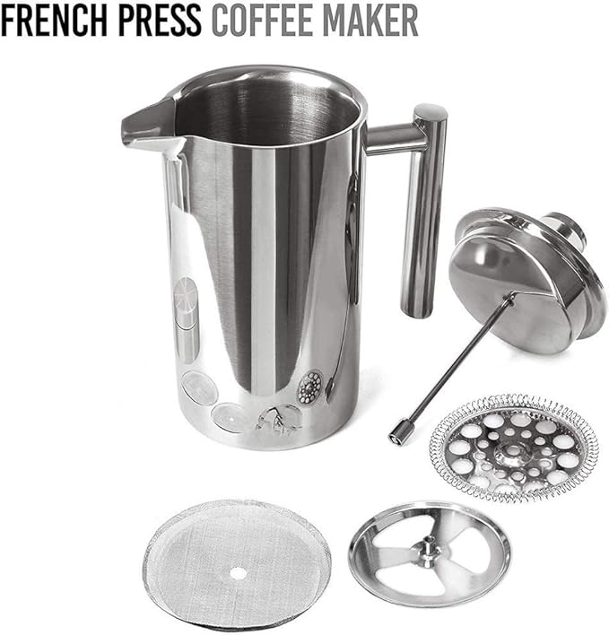 Disfruta de un café o té con cuerpo, aroma intenso y sabor puro con esta elegante prensa francesa de acero inoxidable.